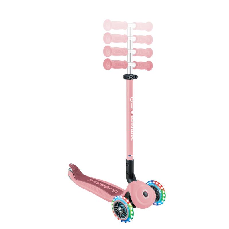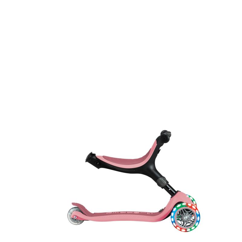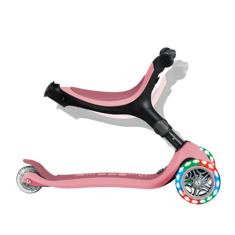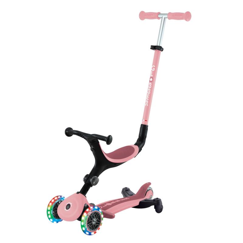 GO•UP ACTIVE LIGHTS 360° оснащений запатентованим батьківським керуванням на 360° в режимі їзди , системою блокування керма, 100% безінструментальним перезбиранням між режимами, регульованим сидінням, Т-подібною ручкою, міцною платформою та світлодіодними колесами без батарейок.