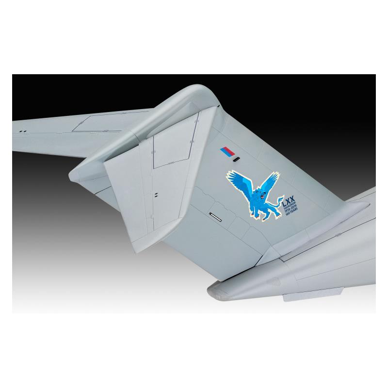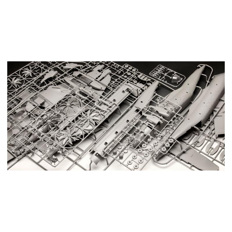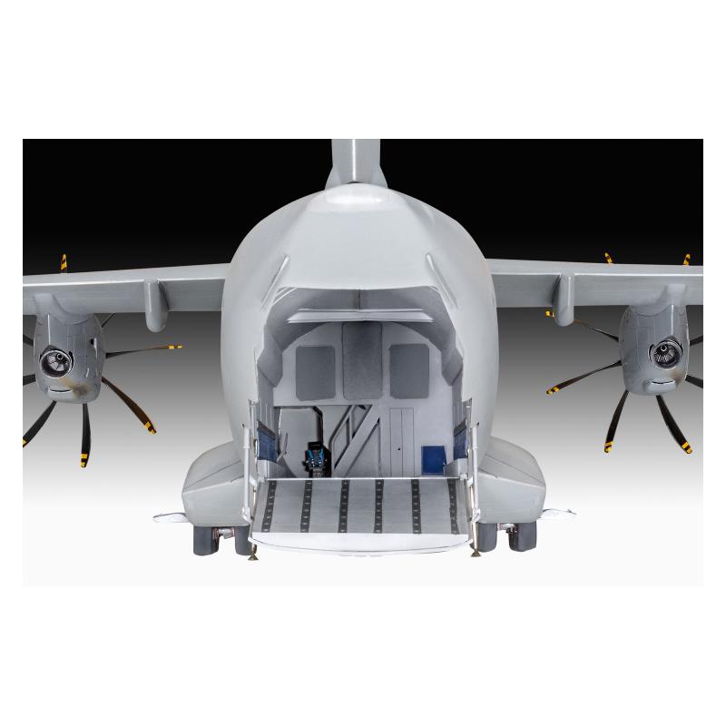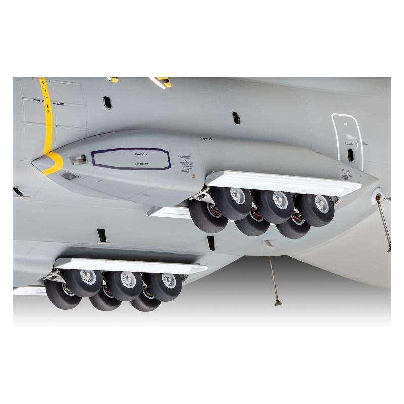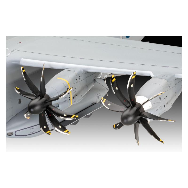 Ця високодетальна модель сучасного вантажно-транспортного літака A400M, довжиною 644 мм та розмахом крил 590 мм, пропонує унікальний досвід моделювання. Завдяки 212 окремим деталям та автентичному зображенню ВПС Іспанії та Королівських ВПС Британії, ця модель є обов'язковою для колекціонерів та ентузіастів. Заглиблені лінії панелей, деталізована кабіна пілотів, додаткова відкрита або закрита хвостова рампа та текстурований вантажний відсік роблять складання справді особливим досвідом. Наклейки, що входять до комплекту, додають завершальний штрих.