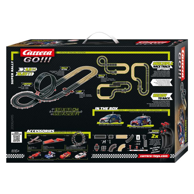 | Продукція австрійської ТМ Carrera вже більше 40 років займає лідируючу позицію на світовому ринку іграшкових трас. В залежності від масштабу треків та автомобилів гоночні траси діляться на декілька серій, в кажній з яких представлені набори частинок гоночного шляху, автомобілі, додаткові аксесуари. Всі траси відповідають найсуровішим європейським стандартам. Чемпіони Франції по раллі Carrera GO !!! набір - Супер Раллі. Автомобілі, що входять у комплект: Citroen DS3 WRC «Citroen WRT, St. Lefebvre», Citroen DS3 WRC «Citroen WRT, M. Ostberg» | ||