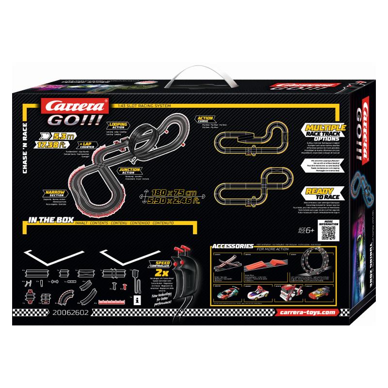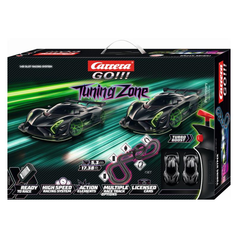 Набір Carrera GO!!! "Зона тюнінгу" поєднує захоплюючі гонки з творчими можливостями. Гіперкари в масштабі 1:43 вражають футуристичним дизайном, який нагадує естетику автомобілів майбутнього. Динамічна форма та стильні деталі роблять їх справжніми магнітом для поглядів і яскравим елементом у світі Carrera. Траса довжиною 5,3 метра пропонує багато різноманітності та напруги з такими елементами, як петлі, перехрестя та естакада. Точне керування та блискавична реакція потрібні, коли гіперкари розганяються до максимальної швидкості.